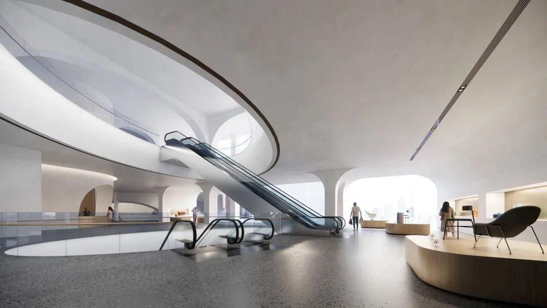 美術(shù)館由ennead設(shè)計(jì),設(shè)計(jì)靈感來源于無錫太湖石,運(yùn)用建筑空間形式語言來展現(xiàn)太湖石瘦、漏、透、皺的獨(dú)特魅力。通過虛實(shí)結(jié)合、架空設(shè)計(jì)、躍層布局、通高空間、懸挑結(jié)構(gòu)和下沉處理等手法,不僅使建筑外觀呈現(xiàn)出太湖石的形式美感,還為參觀者創(chuàng)造了豐富多樣的空間體驗(yàn)。